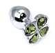 Серебристая анальная втулка с клевером из лаймовых кристаллов - 9 см.