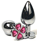Серебристая анальная втулка с клевером из розовых кристаллов - 6,5 см.