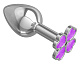 Серебристая анальная втулка с клевером из сиреневых кристаллов - 7 см.