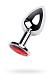 Серебристая анальная втулка с красным кристаллом - 8 см.