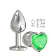 Серебристая анальная втулка с зеленым кристаллом-сердцем - 7 см.