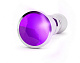 Серебристая фигурная анальная пробка с фиолетовым кристаллом - 14 см.