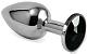 Серебристая гладкая анальная пробка с черным кристаллом - 8 см.