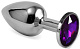 Серебристая гладкая анальная пробка с фиолетовым кристаллом - 5,5 см.