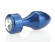 Синяя анальная пробка с прозрачным стразом - 7,8 см.