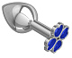 Средняя серебристая анальная втулка с клевером из синих кристаллов - 8,5 см.