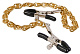 Зажимы на соски с золотистой цепью и бежевыми бусинками