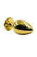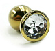 Золотая анальная пробка из алюминия размер S. Страз в основании круглой формы, выполнен из прозрачного стекла. Упакована в вельветовый мешочек для хранения. Вес - 52 гр.