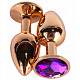 Золотистая анальная пробка с фиолетовым кристаллом - 7,5 см.