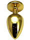 Золотистая анальная пробка с голубым кристаллом - 9 см.