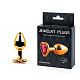 Золотистая анальная пробка с малиновым кристаллом-сердечком - 7 см.