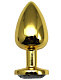 Золотистая анальная пробка с прозрачным кристаллом - 9 см.