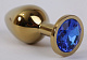 Золотистая анальная пробка с синим кристаллом - 8,2 см.
