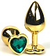 Золотистая анальная пробка с зеленым кристаллом-сердцем - 6,5 см.