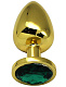 Золотистая анальная втулка с изумрудным кристаллом - 9,5 см.