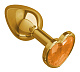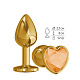 Золотистая анальная втулка с оранжевым кристаллом-сердцем - 7 см.