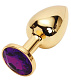 Золотистая металлическая анальная пробка с фиолетовым стразом - 7,6 см.