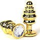 Золотистая ребристая анальная пробка с прозрачным кристаллом - 8,5 см.
