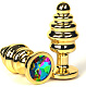 Золотистая ребристая анальная пробка с разноцветным кристаллом - 6 см.