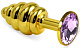 Золотистая ребристая анальная пробка с сиреневым кристаллом - 9 см.