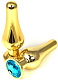 Золотистая удлиненная анальная пробка с голубым кристаллом - 11,5 см.
