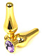 Золотистая удлиненная анальная пробка с сиреневым кристаллом - 10 см.