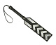 Шлепалка изготовлена из натуральной кожи и вставкок, имитирующих металл. С одной стороны ударная часть хлопушки имеет кожаную поверхность, с другой - декоративную вставку.