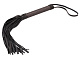 Многохвостовая гладкая плеть Elegant Flogger – стильный универсальный ударный девайс для эротических ролевых игр и практик БДСМ. Флогер относится к мягкому типу. Он состоит из деревянной рукояти, удобной кожаной петли для фиксации изделия на запястье (темляк) и множества хвостов, нарезанных из тонких полос кожи, соединенных между собой металлическими заклепками. Плеть может быть использована как для игровых наказаний, так и для болевого воздействия, придавая остроты сексуальным отношениям и получения новых ощущений. Длина рукояти - 15 см.
