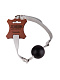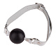 Черный кляп-шар на белых кожаных ремешках