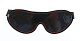 Чёрная перфорированная маска из кожи с красной строчкой.