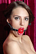 На кожаном черном ремешке представлен красный пластиковый кляп. Шарик имеет диаметр 4 см.