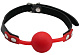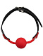 Красный силиконовый кляп-шарик с фиксацией на черных ремешках