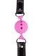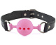 Розовый кляп-шар на черных кожаных ремешках