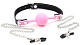 Розовый кляп-шарик с зажимами на соски на металлических цепочках