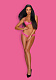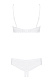 Этот комплект не наденешь под повседневный наряд. Всё потому, что он – лишь иллюзия белья: не скрывает ни пиков бюста, ни нежных местечек между ног. Лиф на косточках, украшенный по центру бантом и подвеской, придаёт груди пышности. Кружевные трусики, также декорированные атласными бантами, имеют пикантный разрез – для интимного доступа и сладострастных ласк! Все бретели регулируются по длине. В комплекте: лиф, трусики.