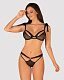 Роскошный комплект из коллекции Obsessivia сложного кроя выполнен из вуали с рисунком логотипа Obsessive. Мягкий бюстгальтер на косточках, бретельки из широких атласных лент завязываются на плечах, на спине застежка-удлинитель. Трусики-панти с вырезами, с бантом из атласных лент над ягодицами. В комплекте: бюстгальтер, трусики.