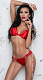 Комплект состоит из бюстгальтера, выполненного из приятного на ощупь, похожего на атлас материала и сетчатых трусиков. Комплект выполнен в единой стилистике и украшен тонкими лентами, вплетенными в изящные колечки. Трусики не имеют хлопковой вставки и являются игровым бельем. В комплекте: трусики, бюстгальтер.