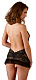 Эффектное кружевное боди, похожее на мини-платье, с украшением на груди. Трусики с доступом.