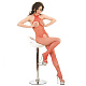 Эластичный кэтсьюит для женщин из мелкой сетки с вырезом-американкой под горло. Зона бикини и грудь полностью открыты.
