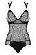 Боди из полупрозрачной сетки с декоративной вставкой из ткани с мокрым эффектом. Регулируемые бретели перекрещены на спине.