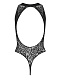 Пикантное боди-стринг с доступом. Изготовлено цельным плетением и украшено цветочным орнаментом. Спереди имитация шнуровки. На спинке круглый вырез. Боди подчеркивает бедра и ягодицы, благодаря оригинальному крою.