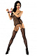 Кэтсьюит выполнен из тонкой черной полупрозрачной ткани, облегает фигуру и подчеркивает каждый изгиб. На груди эротичный вырез, украшенный небольшим бантом. Бретели открывают руки, плечи и шею. Ажурная ткань оттеняет кожу и добавляет соблазнительности. Низ выполнен в виде чулок на пажах, которые делают ноги особенно красивыми и стройными. Спина остается открытой до середины. Такой образ идеален для романтического вечера и любовных утех! В комплекте: кэтсьюит и наручники.