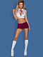Соблазнительная форма студентки, в комплект входит белый топ с глубокой линией декольте, мини-юбка насыщенного розового цвета, трусики и белые гольфы, украшенные атласными бантиками. В комплекте: топ, юбка, трусики-стринги, гольфы.