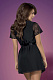 Небольшая длина, подчеркивающая красоту ног, строгий черный цвет, отсутствие воротничка, длинный пояс из атласной ленточки, кружевная оторочка, рукавчики из ажурного полотна – ням-ням! Трусики-стринги в комплекте. В комплекте: пеньюар, трусики-стринги.