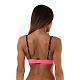 Неоново-розовый бюстгатер в форме планж. Спереди бретели двойные, контрастная черная отделка в белый горох. Застегивается сзади.