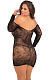 Эротическое мини-платье с длинными рукавами и открытыми плечами. Восхитительная мелкая сетка с цветочным орнаментом. Трусики не входят в комплект!