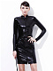 Платье-карандаш с молнией спереди. Выполнено из эластичного wet-look материала.