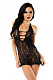 Сексуальное мини-платьице из кружевной сеточки идеально подойдет любой девушке. Невероятное сочетание женственности, эротичности и кокетства делает образ просто сногсшибательным. Глубокая зона декольте украшена тонкими лентами, спина остается полностью открытой. Тонкие завязки на шее и спине для удобства. Приятный на ощупь материал подогревает желания каждый раз, когда руки партнера касаются тела сексапильной красотки.