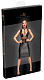 Платье до колен с прозрачными вставками в сеточку на груди и вокруг талии. Регулируемая бархатная лента проходит через глубокий вырез и заканчивается вокруг шеи. С застежкой-молнией и разрезом сзади. Облегающий крой.