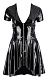 Виниловое платье со слегка расклешенной юбкой. Искусно асимметричный крой: спереди короче, чем сзади. Металлическая молния на глубоком вырезе отлично подчеркивает декольте.